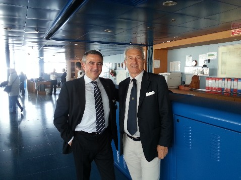 Nella foto Federico Prestileo con Luca Castigliego, Vice Presidente Propeller e CEO Sotrade a bordo di una nave Grimaldi Lines